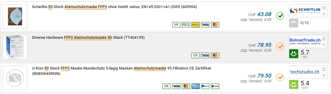 Verstehe ich auch nicht bei 92 Rappen für eine FFP2 Maske