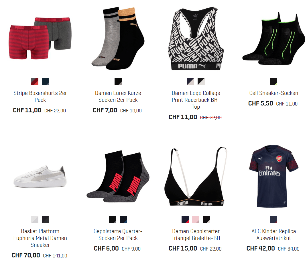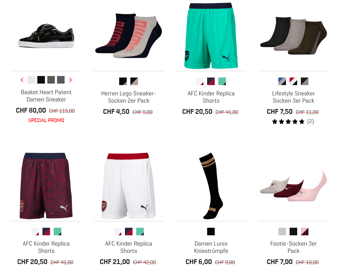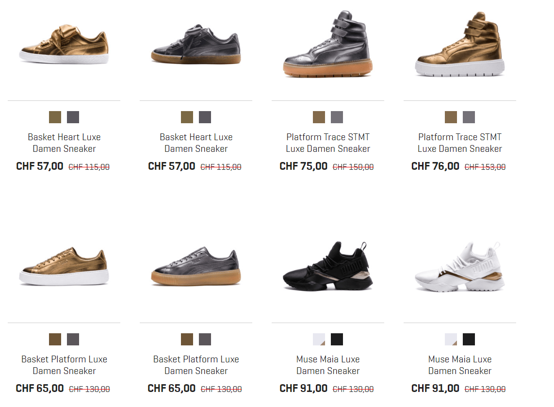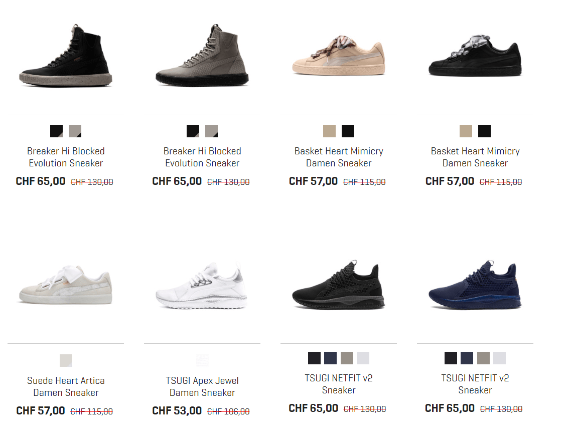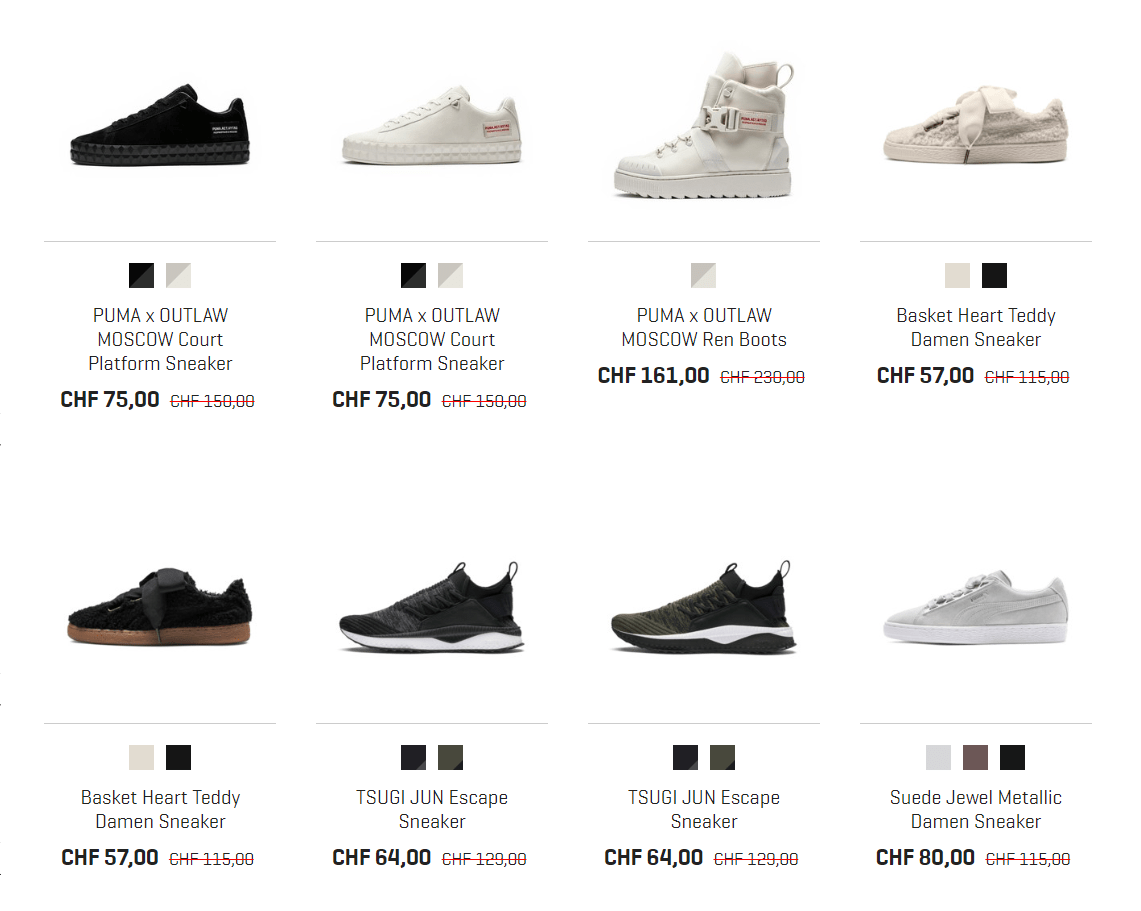 Bei Puma ist das SALE Ende absehbar und es gibt bis zu 50% Rabatt auf eine grosse Auswahl an Artikeln. Besonders interessant ist, dass viele Sneakers zum halben Preis angeboten werden.