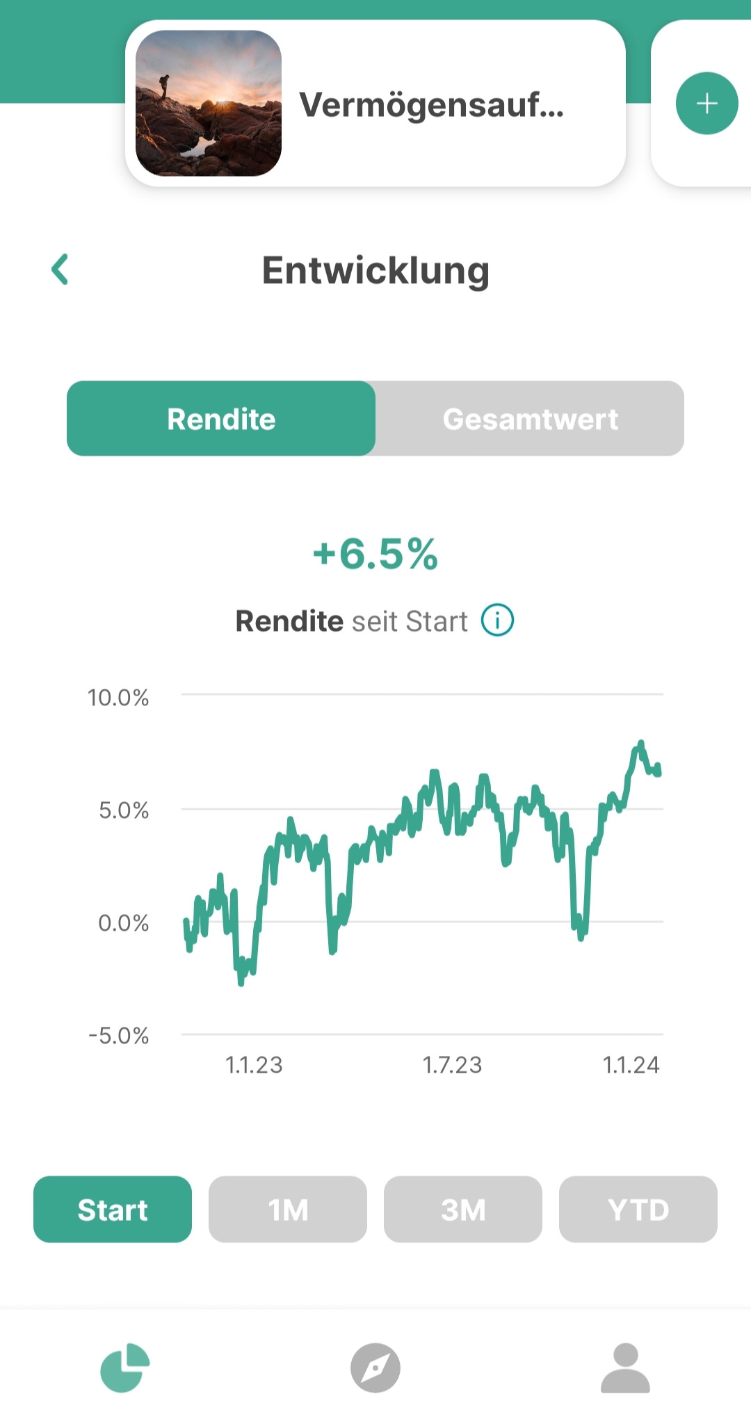 • Sobald dein Geld wie unter Punkt 4 investiert ist, schwankt der Wert mit den Finanzmärkten.