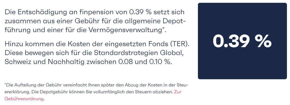 Da Findependent am gleichen Tag die Gebühren senkte (ein Schelm wer Böses denkt), als FinPension ihr neues Produkt (günstiger) lancierte sind die beiden Produkte nun in etwa gleich teuer, um die 0.4% + TER.