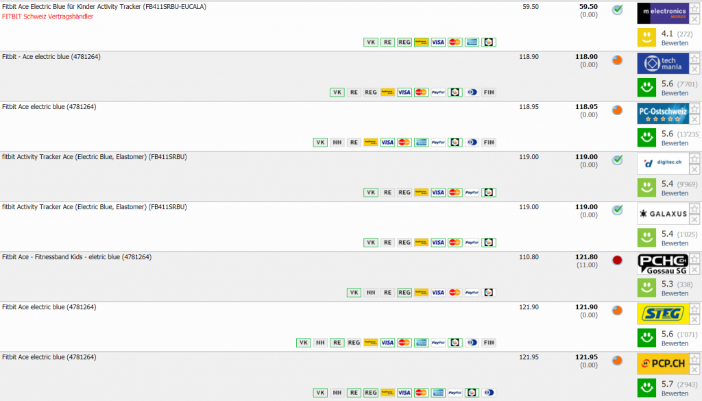 Bei melectronics gibt’s den Fitbit Ace Electric Blue für Kinder für CHF 59.50. Kombinierbar mit dem 10.- Gutschein, den man für die Newsletter-Anmeldung erhält. Zusätzlich noch ein paar Kabelbinder in den Warenkorb, um den Mindermengenzuschlag zu umgehen. Kommt auf einen Endpreis von CHF 50.95