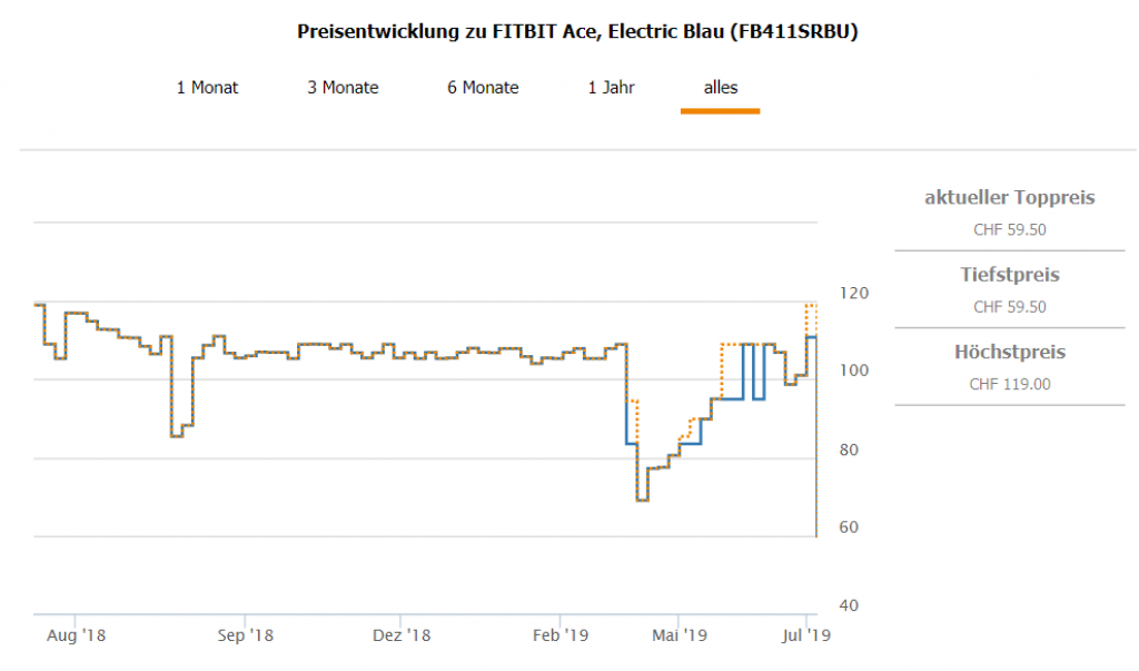 Zweitbester Preis zur Zeit bei CHF 118.90, Bestpreis war CHF 69.-