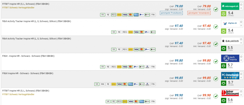 Bei Microspot gibt es momentan die FITBIT Inspire HR für den neuen Bestpreis von CHF 79.-. Der vorherige Bestpreis war CHF 89.90. Der zweitbeste Preis beträgt CHF 97.40.