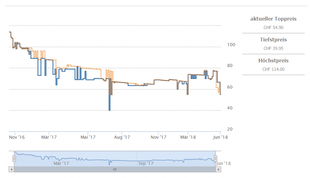 In einem Preisfehler gab’s das Fitbit Flex 2 bereits einmal für diesen Preis, seither kostete das Fitnessarmband immer mindestens CHF 54.90. Der zweitbeste Preis in der Schweiz liegt momentan bei CHF 66.50