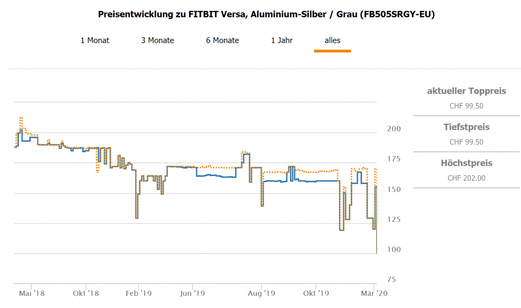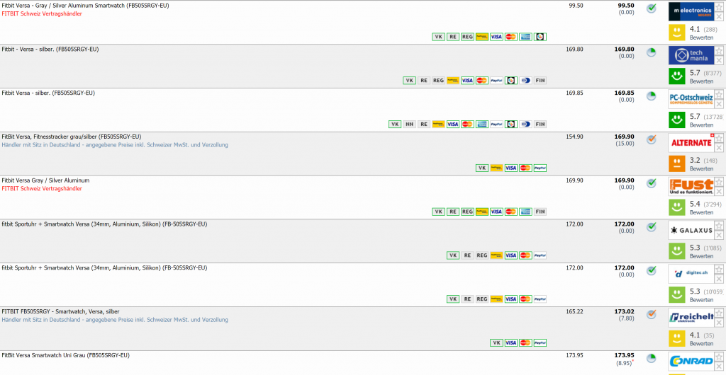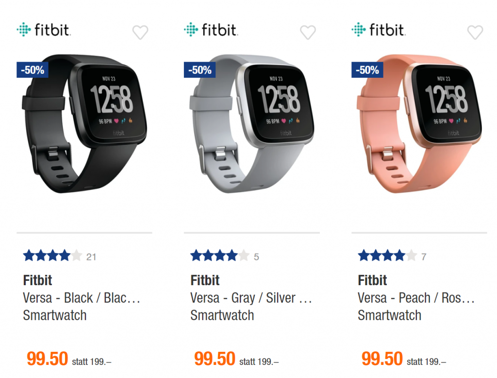 Bei melectronics gibt’s die Smartwatch/den Fitnesstracker Fitbit Versa gerade für CHF 99.50 Das ist der neue Bestpreis laut toppreise. Mit dem 10.- Gutscheincode, den man für die Anmeldung zum Newsletter erhält, bezahlt man sogar nur CHF 89.50