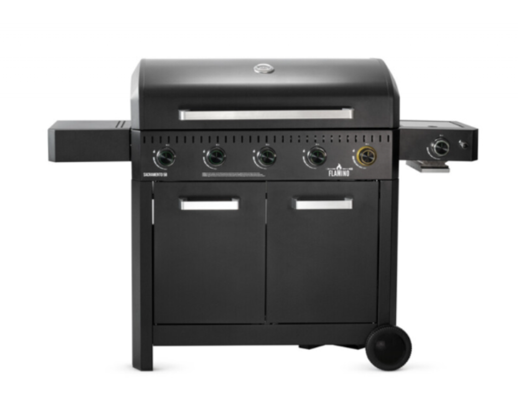 Dieser Grill lässt alle Herzen höherschlagen. Der brandneue hochwertige Gasgrill der Marke Flamino überzeugt mit seinem modernen, zeitlosen Design und der innovativen Wild-Zone. Der besonders leistungsstarke Wild-Zone-Brenner ermöglicht ein schnelleres Aufheizen des Grills sowie ein knusprigeres Anbraten des Grillgutes. Zusätzlich verfügt der Grill über einen Infrarot-Seitenbrenner um Steaks besonders scharf, also bei sehr hohen Temperaturen zu Grillieren. Damit bleibt der Saft im Grillgut und es entstehen innert kürzester Zeit besonders genussvolle Aromen. Der Sacramento 5B ist praktisch in der Nutzung und einfach in der Reinigung. Die emaillierten Gussroste sowie das integrierte Multi-Kochsystem mit den optional erhältlichen Zubehören wie Wok oder Pizzastein ermöglichen vielfältiges Grillieren und Backen. Der Grill erfüllt alle Wünsche und die fünf Brenner erlauben direktes und indirektes Grillieren. Der integrierte Warmhalterost kann als zusätzliche Grillfläche genutzt werden. Das grosse, abklappbare Seitentablar und der Stauraum im Untergestell sind weitere Highlights des Sacramento 5B. Die ausgeglichene Hitze über der gesamten Fläche bietet extrem viel Platz, auch wenn es mal etwas mehr Besuch wird. Die grossen Räder ermöglichen Mobilität auf jedem Untergrund.
