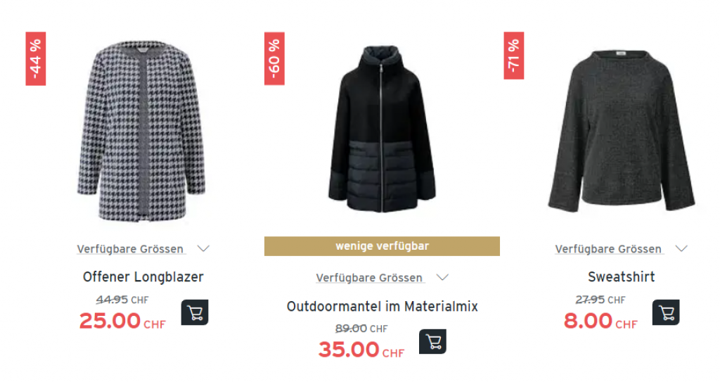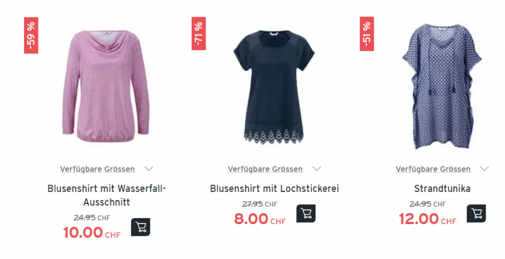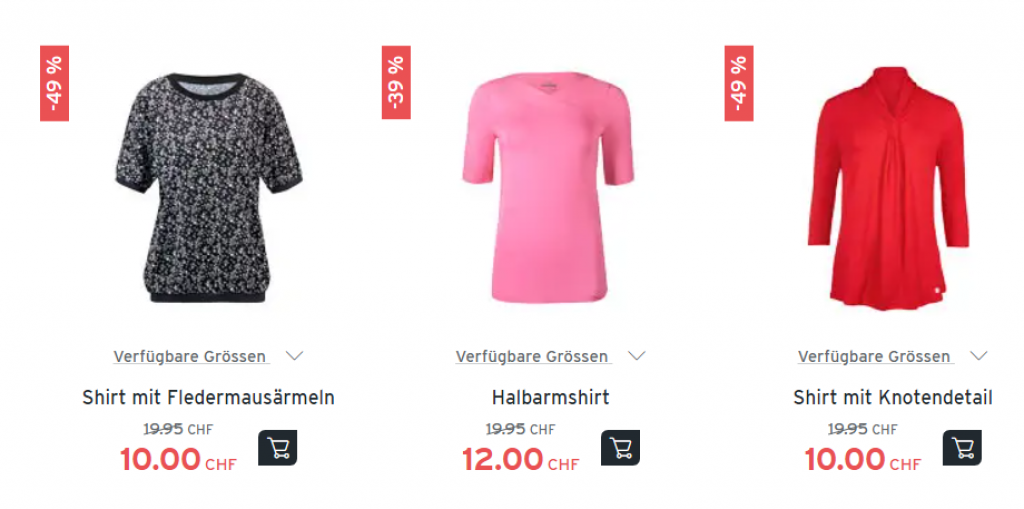 Bei Tchibo findet gerade ein Flash Sale statt. Es scheinen vor allem Frauen-Artikel reduziert zu sein. Shirts gibt’s beispielsweise in diversen Ausführungen ab CHF 8.- Der Versand ist ab einem Bestellwert von CHF 30.- gratis. Hier einige Beispiele: