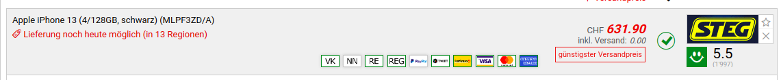 Es war kurz online und wurde auch auf Toppreise so gelistet. Es wurde aber wieder angepasst bei Steg