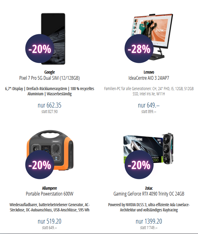 Heute nun der letzte Tag Sale. Gerade was noch an Lagerware, unter anderem RTX 40xx reduziert ist, wird so schnell nicht mehr diese Bestpreise erreichen.