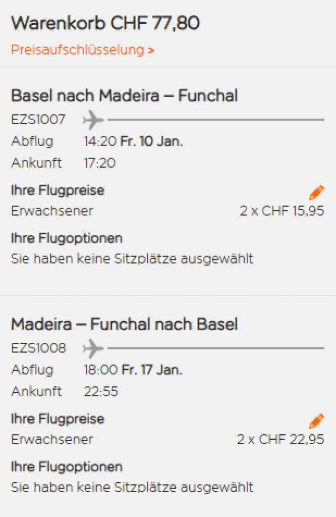 Bei Easyjet gibt’s wieder einmal extrem günstige Flüge. Inkl. Handgepäck geht’s an verschiedenen Terminen von November 2019 - März 2020 von Basel nach Madeira und zurück für ab CHF 38.90 pro Person, wenn man zu zweit reist.