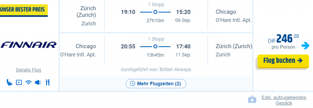 Aktuell gibt’s von OneWorld (zu der u.a. British Airways, Finnair, Iberia und American Airlines) gehören, einige attraktive Deals für Flüge in die USA. Die besten Preise gibt’s bei CheapTickets.ch.