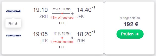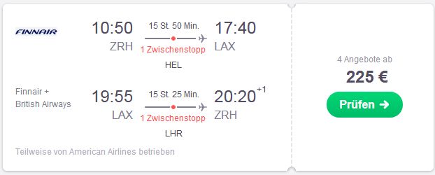Spitzenpreise für Flüge in die USA! Schon ab 192€ / ~219CHF könnt ihr hin und zurück nach New York oder Los Angeles von Zürich fliegen. Und dieses mal mit der oneworld Allianz Bei den ganz günstigen Preisen ist eine Verbindung manchmal etwas länger, aber wer ein paar Euro mehr ausgibt bekommt (siehe zweiter Screenshot unten) auch top Flugzeiten zum top Preis. Handgepäck-Koffer ist inklusive und dürfte für viele ausreichen bei einem Sommerurlaub in New York. Wer Aufgabe-Gepäck benötigt zahlt für Hin und Zurück mehr, was aber immer noch einen super inkl.-Gepäck-Preis ergibt! Zb. New York für ca. 330.- CHF inklusive Gepäck!