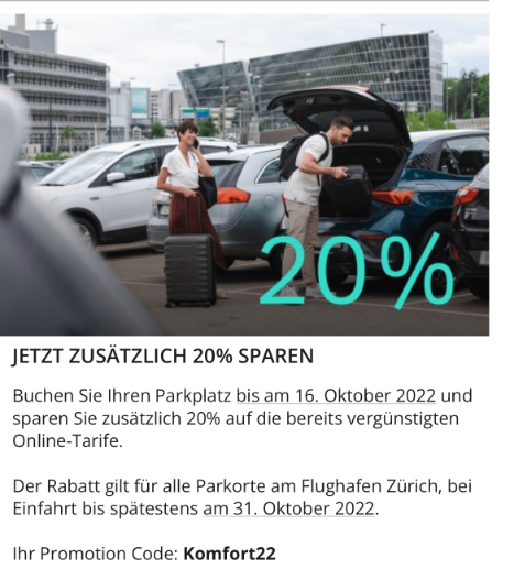 Am Flughafen Zürich sind die Parking-Preise bekannterweise recht hoch 😉 Mit dem Gutscheincode von zuruckl wird hier allerdings Abhilfe geschaffen!