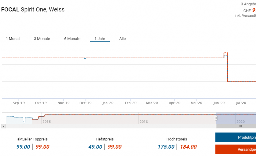 Bei Azone gibt es die Focal Spirit One Kopfhörer in Weiss für den neuen Bestpreis von CHF 99.-. Der vorherige Bestpreis war CHF 169.-. Der zweitbeste Preis beträgt CHF 189.-.