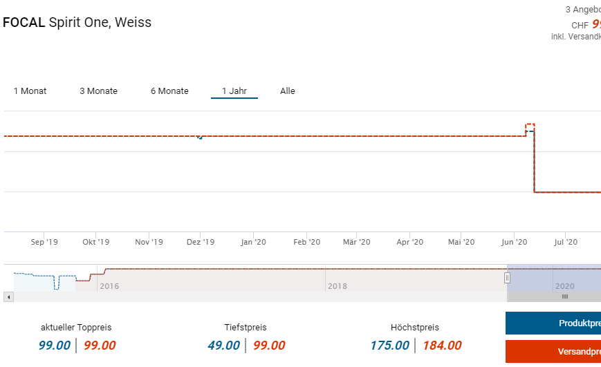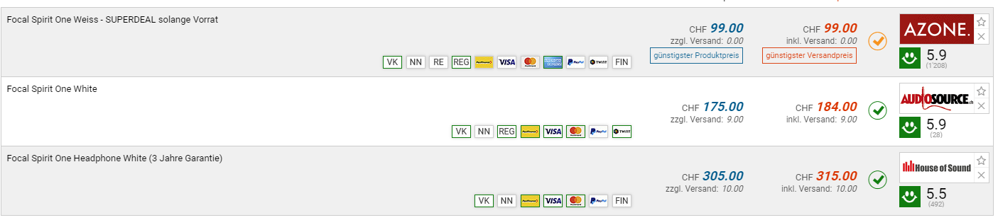 Bei Azone gibt es die Focal Spirit One Kopfhörer in Weiss für den neuen Bestpreis von CHF 99.-. Der vorherige Bestpreis war CHF 169.-. Der zweitbeste Preis beträgt CHF 189.-.