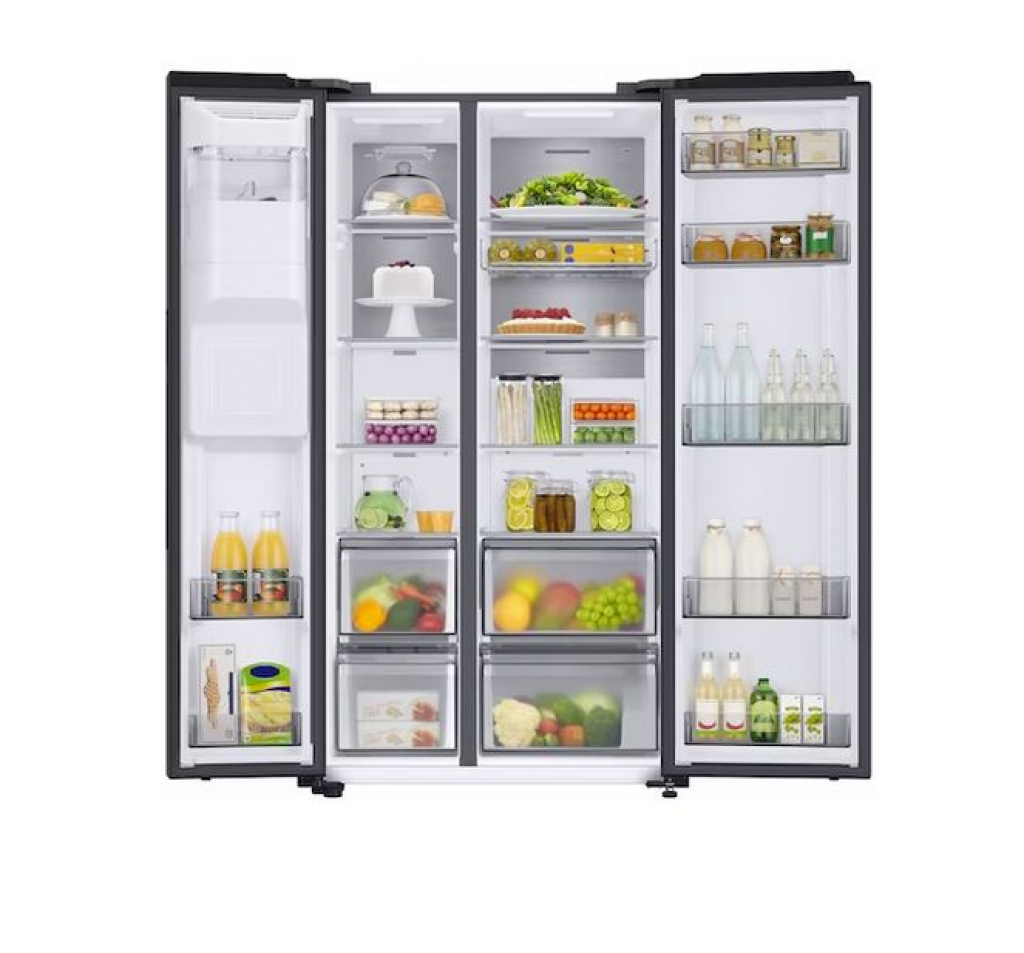 SpaceMax Side-by-Side bietet bis zu 30 % mehr Nutzinhalt als vergleichbare Samsung Modelle mit gleichen Aussenmassen. Dieser Raumvorteil wird durch besonders dünne Gerätewände mit dennoch starker Isolierwirkung erzielt. Das ordentliche Verstauen grosser Lebensmitteleinkäufe wird somit wesentlich erleichtert.