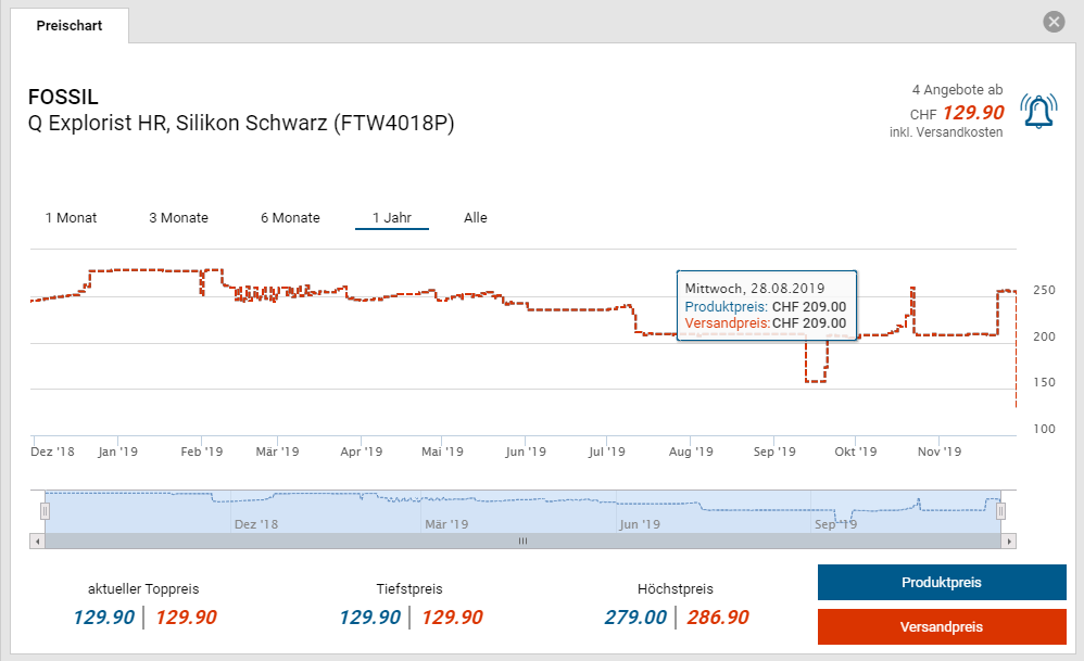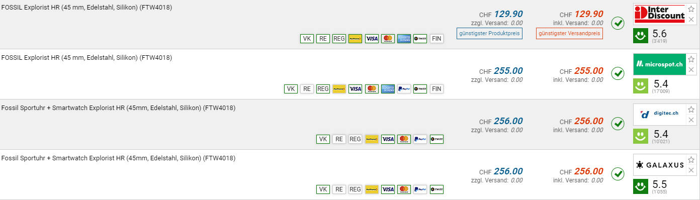Bei Interdiscount gibt es die FOSSIL Q Explorist HR für den neuen Bestpreis von CHF 129.90. Der vorherige Bestpreis war CHF 158.80. Der zweitbeste Preis beträgt CHF 255.-.