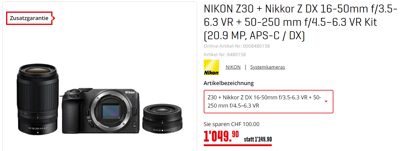 Bei Registrierung auf Nikon.ch gibt es sogar noch ein weiteres Jahr Garantie dazu.