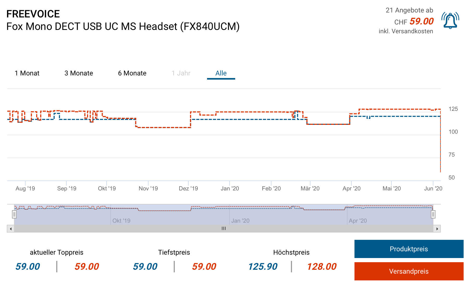 Bei arp gibt es aktuell das FREEVOICE Fox Mono DECT USB UC MS Headset Für 59.- CHF. Zweitbester Preis gemäss toppreise sind 127.90 CHF.