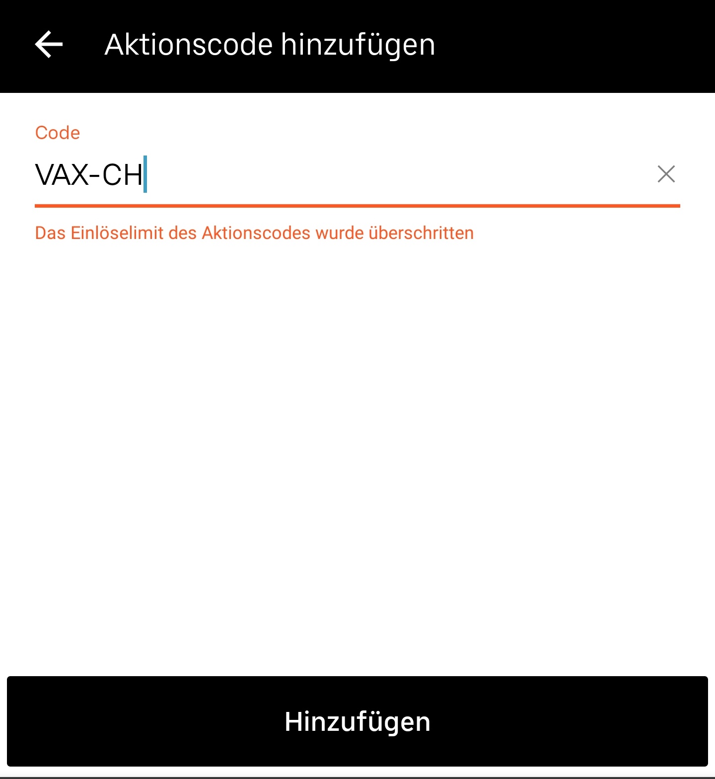 Das Einlöselimit des Aktionscodes wurde überschritten