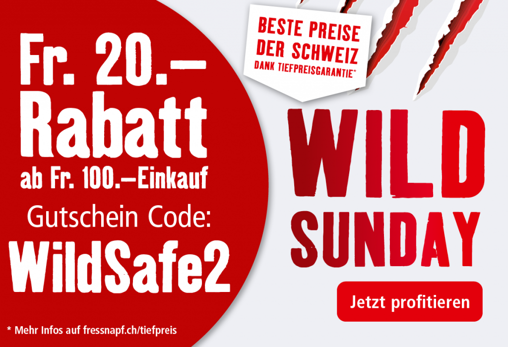 Bei Fressnapf gibts nur heute 20 Franken Rabatt ab einem Mindestbestellwert von 100 Franken. Herzlichen Dank an dieser Stelle an moni für den Hinweis!