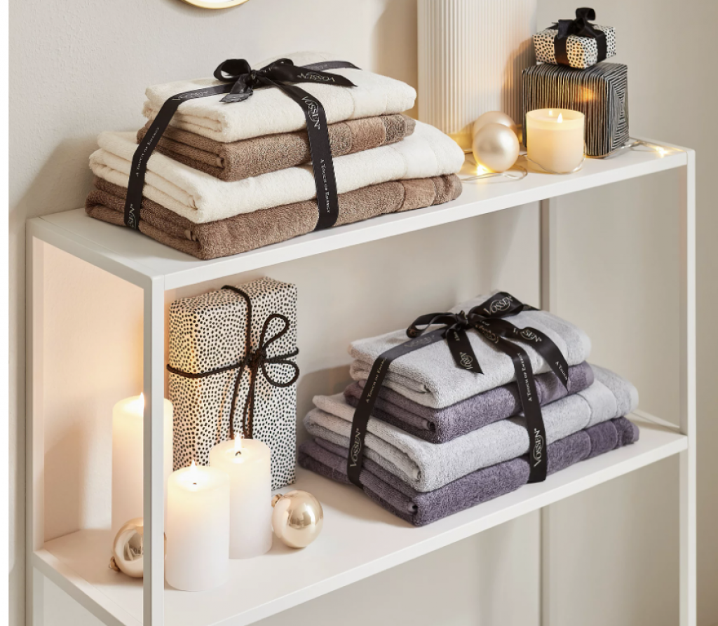 Das Set beinhaltet 4 flauschige Tücher aus 100 % Baumwolle. 2 Duschtücher + 2 Handtücher