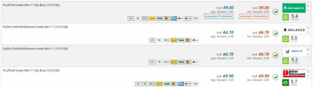 Bei Microspot gibt es die FUJIFILM Instax Mini 11 zum neuen Bestpreis von CHF 59.-. Der vorherige Bestpreis und auch zweitbeste Preis beträgt CHF 66.70.