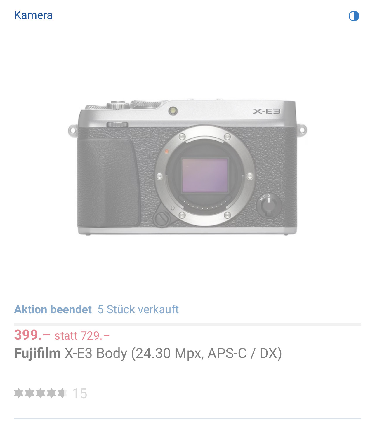 War gestern für 399.- bei Digitec, die silbrige Variante ohne Objektiv.