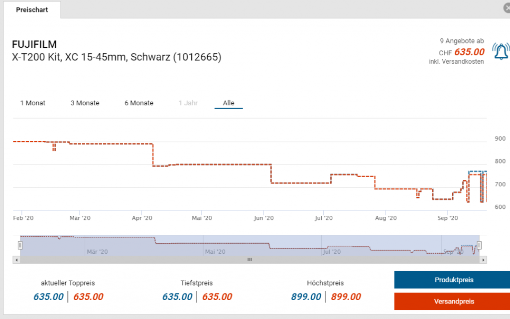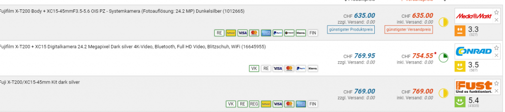 Bei Media Markt gibt es das FUJIFILM X-T200 Systemkamera Kit für den neuen Bestpreis von CHF 635.-. Seit Monaten sinkt der Preis ständig, zuletzt war er vor 2 Wochen so tief. Der zweitbeste Preis liegt bei CHF 754.55.