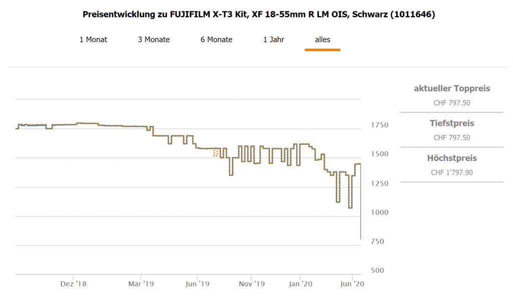 Bei melectronics gibt’s gerade die Systemkamera FUJIFILM X-T3 Black im Kit mit XF 18-55mm für CHF 797.50 Mit dem Gutscheincode, den man für die Newsletter-Anmeldung erhält, gibt’s noch einen 10.-Rabatt, so bezahlt man CHF 787.50 Zweitbester Preis beträgt CHF 1447.- Bestpreis laut toppreise war bei CHF 1068.65