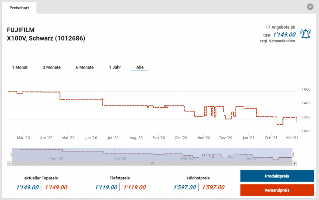 Ein klein wenig über dem Preis von Fust vor 4 Wochen aber dennoch anständig. Um zum Preis zu gelangen, muss man sich für den Newsletter anmelden und bekommt danach umgehend einen personalisierten CHF 10.- ab CHF 50.- Gutschein zugestellt. Aktuell (Stand 17:42 Uhr) sind noch 6 Stück verfügbar, Angebot gilt noch bis um Mitternacht!