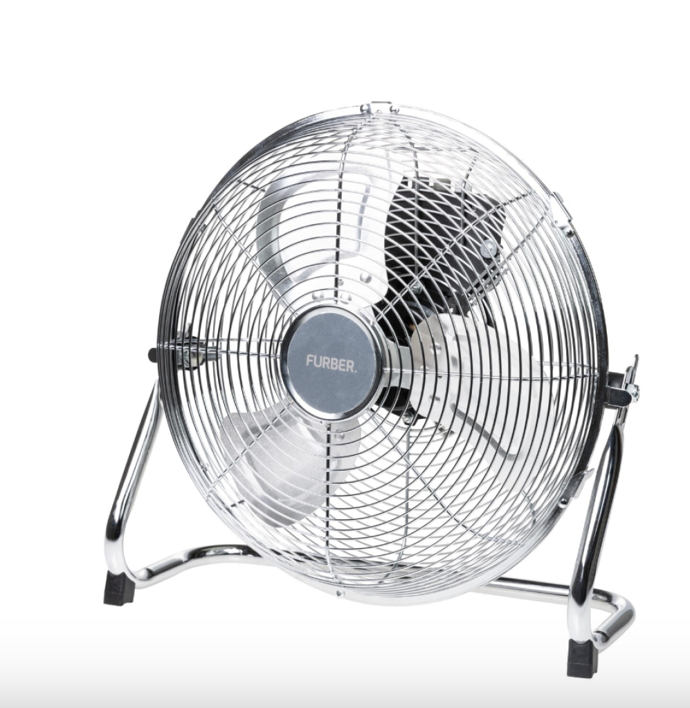 FURBER Bodenventilator Vayu-Industry 12. Drei Geschwindigkeitsstufen. Mit Tragegriff und Kabelaufwicklung. Robust, kraftvoll und geräuscharm. Standsicher und rutschfest. Stufenlos verstellbarer Neigungswinkel.