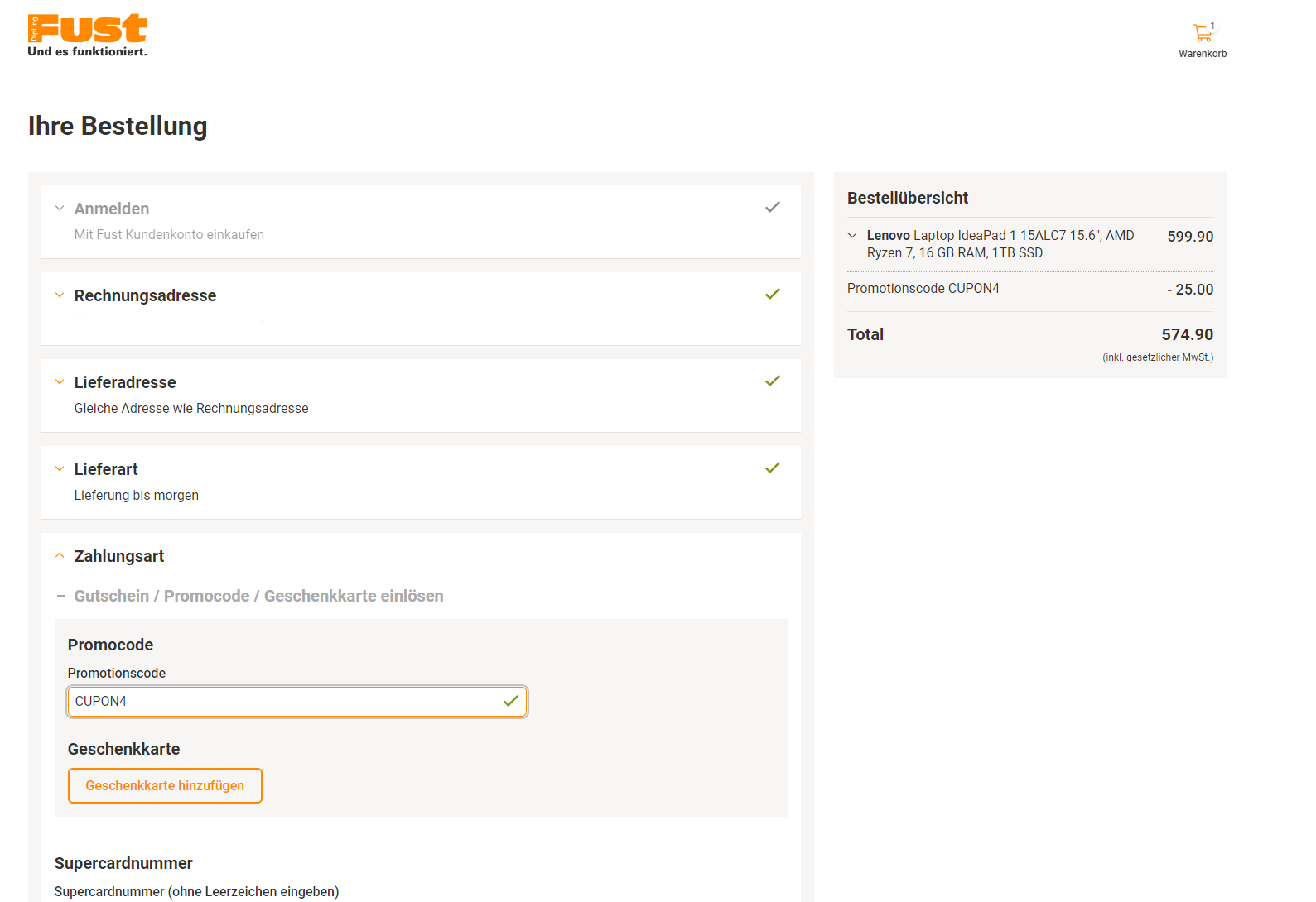 Ach....13" Notebook auf direkt so weit runter gescrollt, dass ich nur die Zahlungsmittel sah, aber das Feld für Gutschein nicht. Danke!