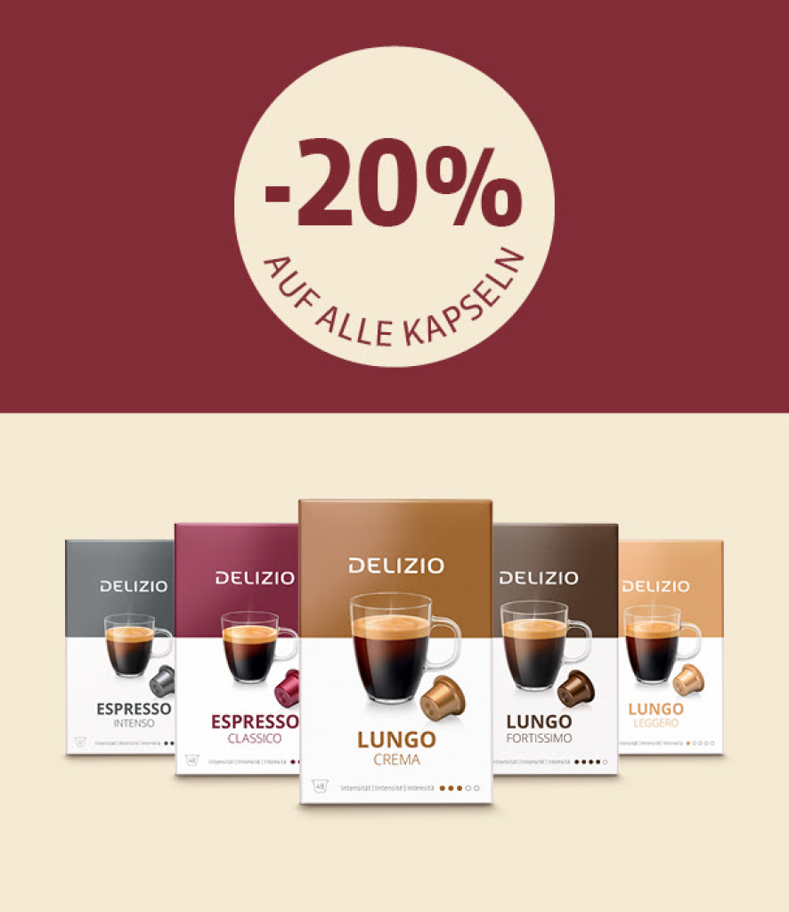 Bei Fust kannst du jetzt von einer attraktiven Kaffee-Aktion profitieren: Mit dem angegebenen Gutscheincode erhältst du 20% Rabatt auf alle Delizio Kapseln. Einfach den Code DELIZIO20 im Checkout eingeben und deine Lieblingssorten zu einem reduzierten Preis geniessen. Die Aktion eignet sich ideal, um deinen Kaffeenvorrat aufzufüllen oder neue Aromen auszuprobieren. Die Preise verstehen sich inklusive 8,1% MwSt. sowie vorgezogener Recyclinggebühr. Das Angebot gilt nur für kurze Zeit und solange der Vorrat reicht.