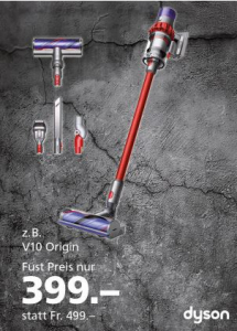 Zum Beispiel der Dyson V10 Origin für CHF 389.- statt CHF 499.- mit dem Gutschein Code NEWS22: LINK
