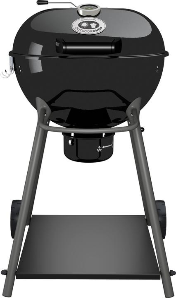 Der Outdoorchef Kensigton 570 C bietet mit seinem 54 cm Durchmesser eine grosse Grillfläche, die dir erlaubt, bequem verschiedenste Speisen zuzubereiten und auch grössere Grillpartys zu veranstalten. Die Edelstahl-Kohleschale sorgt für schnelles Anzünden und minimiert den Verlust von Kohle oder Briketts während des Grillens. Die Hitze lässt sich dank zwei Lüftungsöffnungen optimal regulieren, was dir präzise Kontrolle über das Grillen ermöglicht. Der integrierte Deckel mit Scharnier sorgt für Komfort, während das untere Regal praktischen Stauraum für Zubehör bietet.