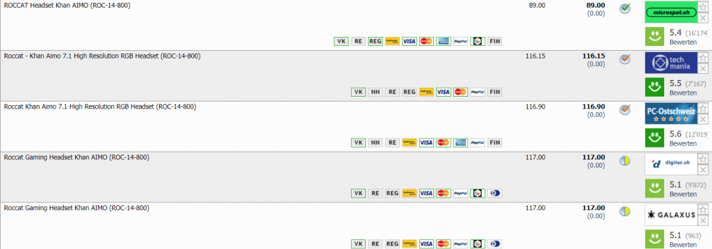 Microspot hat auch den Preis fürs ROCCAT Khan Aimo Gaming-Headset gesenkt. Neu kostet es noch CHF 89.- Der zweitbeste Preis in der Schweiz beträgt CHF 116.15, bisheriger Bestpreis war bei CHF 104.90.