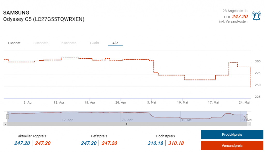 Bei Fust gibts diese Woche den Gaming-Bildschirm Samsung LC27G55T zum neuen Bestpreis von knapp 250 Franken. Laut toppreise lag der Preis bisher nie tiefer als bei CHF 263.90. Wenn ihr zudem euren Warenkorb auf 250 Franken auffüllt, z.B. mit diesen Muttern, könnt ihr den Gutschein für die Newsletter-Anmeldung bei blackfridaydeals anwenden und 20 Franken sparen!