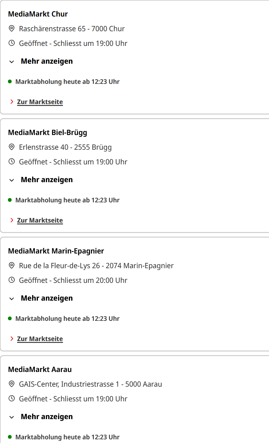 Wurde gleich angepasst, gestern gab es leider keine Marktabholmöglichkeiten mehr. Danke für den Hinweis! Es scheint wohl noch einige zu haben, mal schauen, wie lange noch.