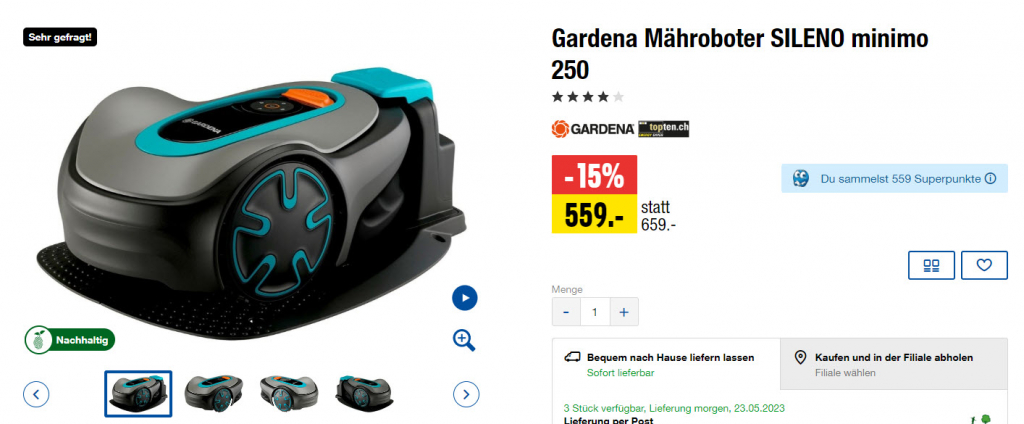 GARDENA SILENO minimo 250m², CH-Version (15201-22) ab CHF 559.00 bei Toppreise.ch