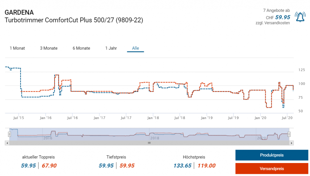 Bei Jumbo gibts gerade den Rasentrimmer ComfortCut Plus 500/27 zum Aktionspreis von knapp 60 Franken zur Abholung, wenn man sich das Gerät liefern lässt kommen noch 8 Franken Lieferkosten dazu. Laut toppreise solls diesen Preis schon mehrmals gegeben haben.