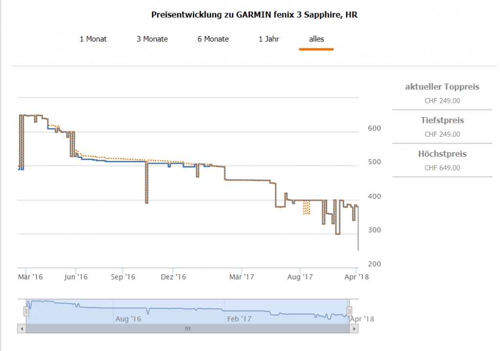 Neu in Aktion bei melectronics ein echter Schnapper! Die Garmin Fenix 3 HR Smartwatch zum absoluten Best Price ever. Mit den Gutscheincodes gibt’s die Smartwatch für CHF 214.10. Der zweitbeste Preis in der Schweiz ist CHF 379.- Der vormals beste gemessene Preis in der Schweiz lag bei CHF 299.-
