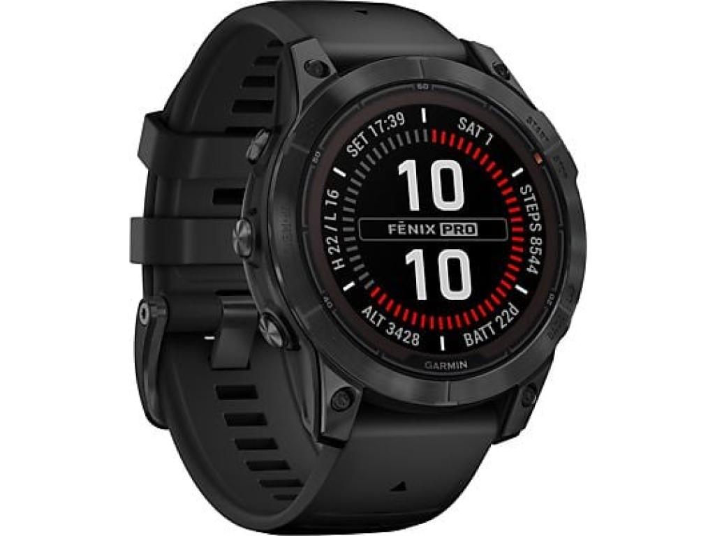 Die Garmin fēnix 7 Pro Solar ist eine robuste und vielseitige GPS-Smartwatch, die dich bei jeder sportlichen und Outdoor-Aktivität begleitet. Sie bietet eine beeindruckende Akkulaufzeit dank Power Glass™ mit Solar-Ladelinse und unterstützt dich mit über 80 verschiedenen Sport-Apps. Die integrierte LED-Taschenlampe sorgt auch bei Dunkelheit für Sicherheit, während internationale Topokarten und präzise Navigation dich zuverlässig ans Ziel bringen. Mit Funktionen wie Trainingsbereitschaft, Hill Score und Ausdauerwert kannst du deine Leistung gezielt verbessern und deine Gesundheit stets im Blick behalten
