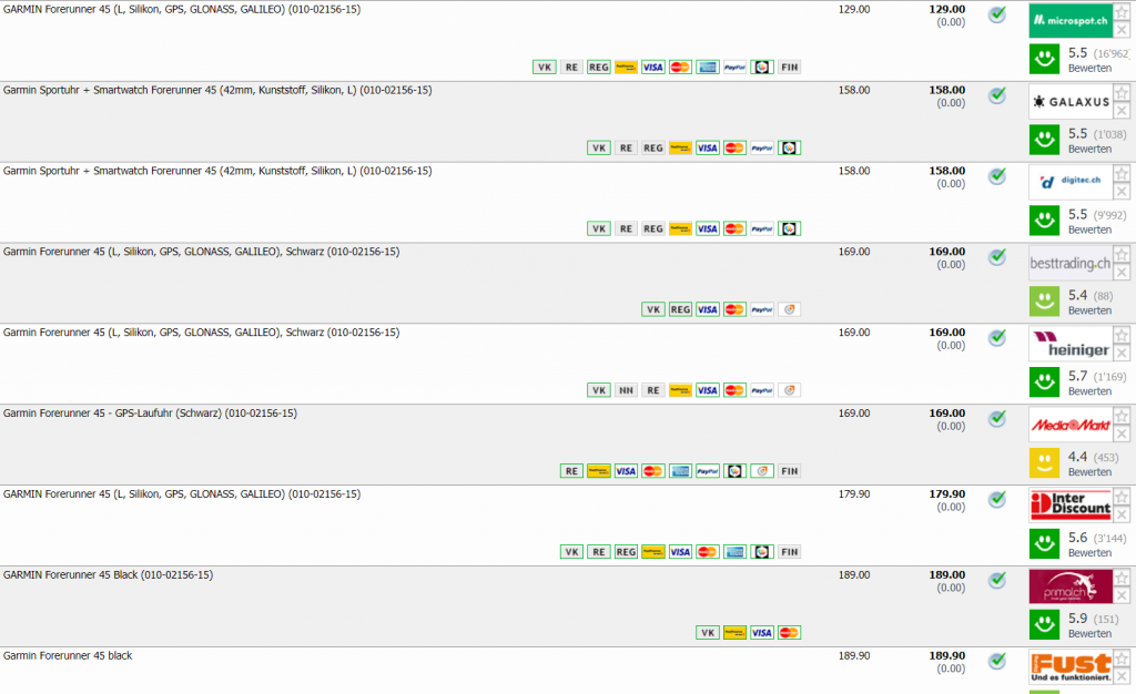 Bei microspot gibt’s die GPS-Sportuhr Garmin Forerunner 45 gerade für CHF 129.- Mit Gutscheincode 10-CHF-MSP sogar für CHF 119.- Bestpreis bisher war bei CHF 129.- Zweitbester Preis beträgt 158.-