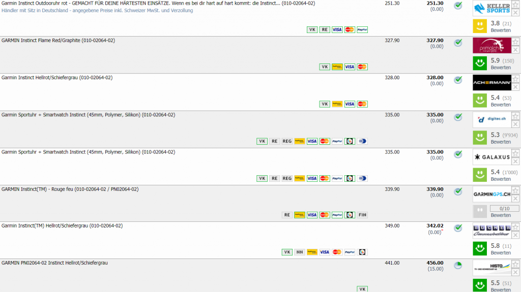 Zweitbester Preis beträgt CHF 327.90 Bestpreis war schon einmal die CHF 251, günstiger gab es die Uhr laut toppreise noch nie.