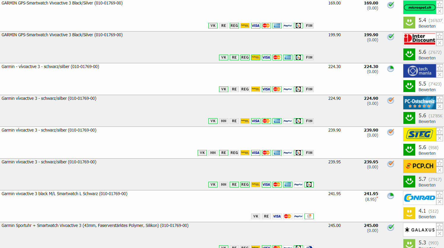 Bei microspot gibt’s heute die GARMIN vivoactive 3 für CHF 169.- Bestpreis bis jetzt und gleichzeitig zweitbester Preis beträgt CHF 199.90
