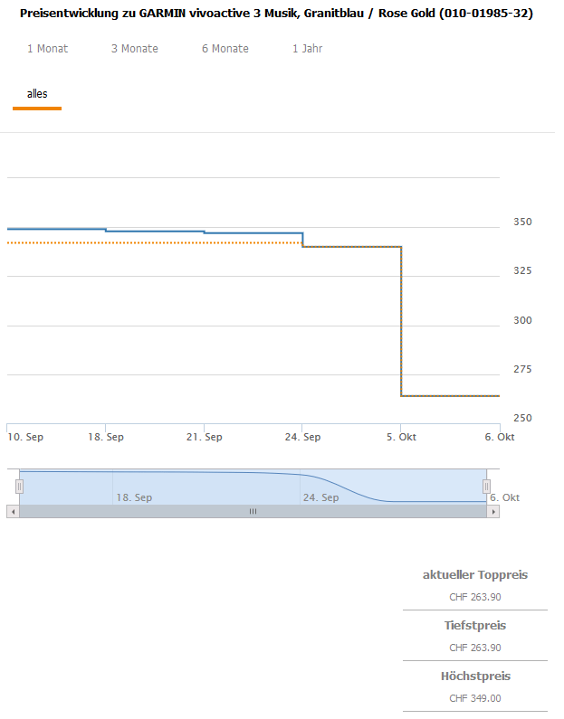 Am interessantesten dürfte der Deal für diejenigen sein welche die Garmin in Granitblau/Rose Gold möchten, denn diese gab es bislang nie günstiger als für 340.- CHF.