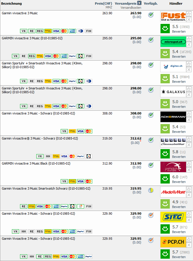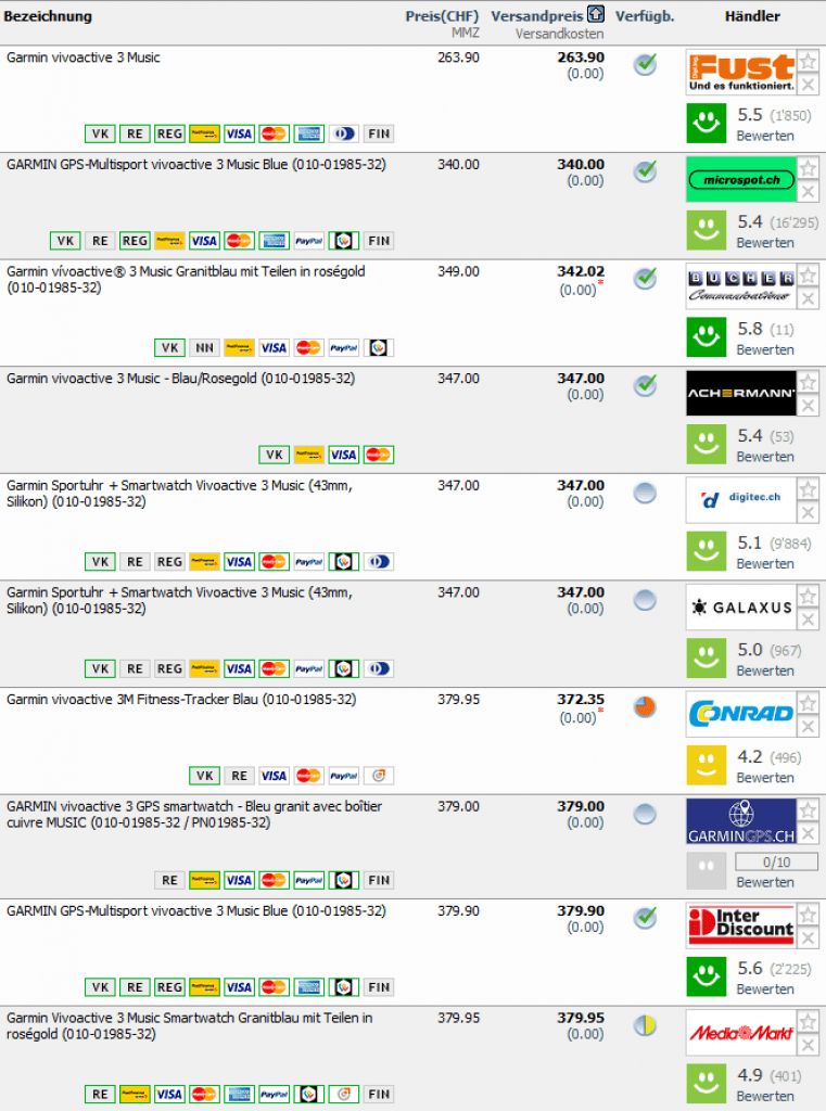 Bei Fust gibt es aktuell die GARMIN vivoactive 3 Musik in Schwarz und Granitblau/Rose Gold für je 263.90 CHF.
