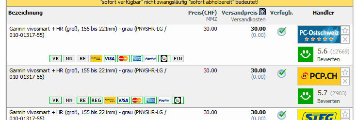 wird für 30 CHF in grau verkauft. Es haben alle mitgezogen. Der günstigste bisherige Preis lag bisher bei 134.90 CHF am 10.02.16. Schwarz kostet sie 139 CHF