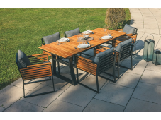 Entdecke den Gartenstuhl STRIPE Aluminium schwarz, der ideal für deine Entspannungsmomente im Freien ist. Seine Sitzfläche und Rückenlehne aus Textilene garantieren dir einen optimalen Komfort. Das Gestell aus schwarzem Aluminium ist gleichzeitig leicht und widerstandsfähig. Geniesse seine Armlehnen aus massivem Akazienholz (FSC-zertifiziert) für einen natürlichen und eleganten Stil. Sein schlichtes Design und die matten Oberflächen werden sich perfekt in deinen Aussenbereich einfügen. Die Beine dieses Stuhls sind mit zwei Stützpunkten konzipiert, die eine gute Stabilität bieten. Er lässt sich leicht selbst zusammenbauen und wird schnell zu einem Muss in deinem Garten werden. Das massive Akazienholz aus Vietnam verleiht dem Stuhl eine warme und authentische Note. Die mitgelieferten Kissen sorgen für noch mehr Komfort.
